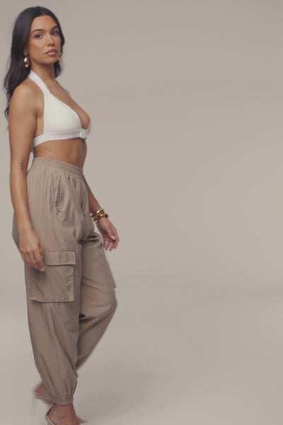 Make a bold impact with our Ivory Belted Motion Halter Top. This edgy active top features a classic halter neckline secured by a front buckle closure, creating a look that demands attention. Crafted by a mix of jersey fabric and bandage, this contemporary top pairs effortlessly with any kind of bottoms. Stretchy. Double-lined.