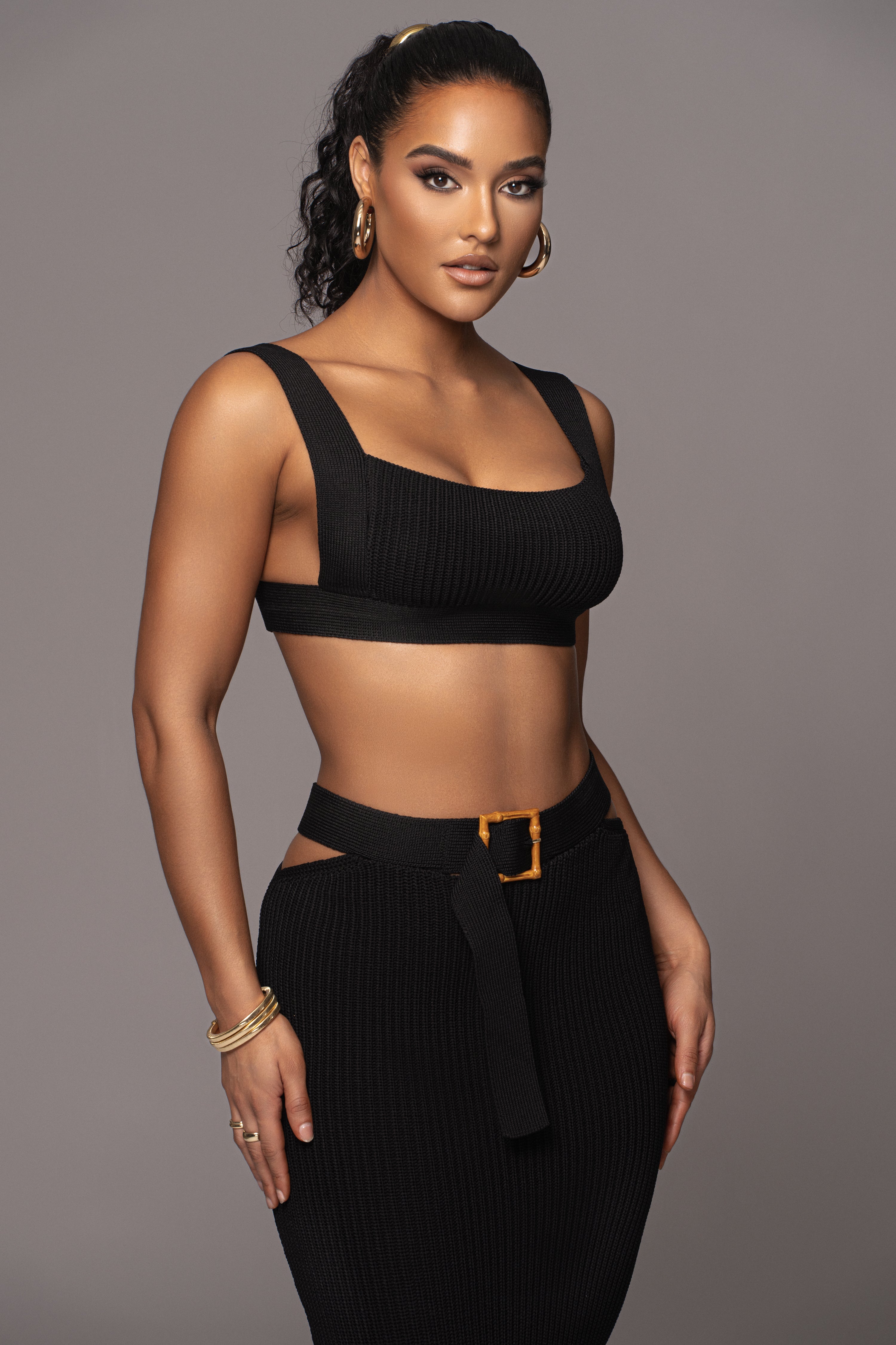 طقم تنورة نيكول المضلعة باللون الأسود