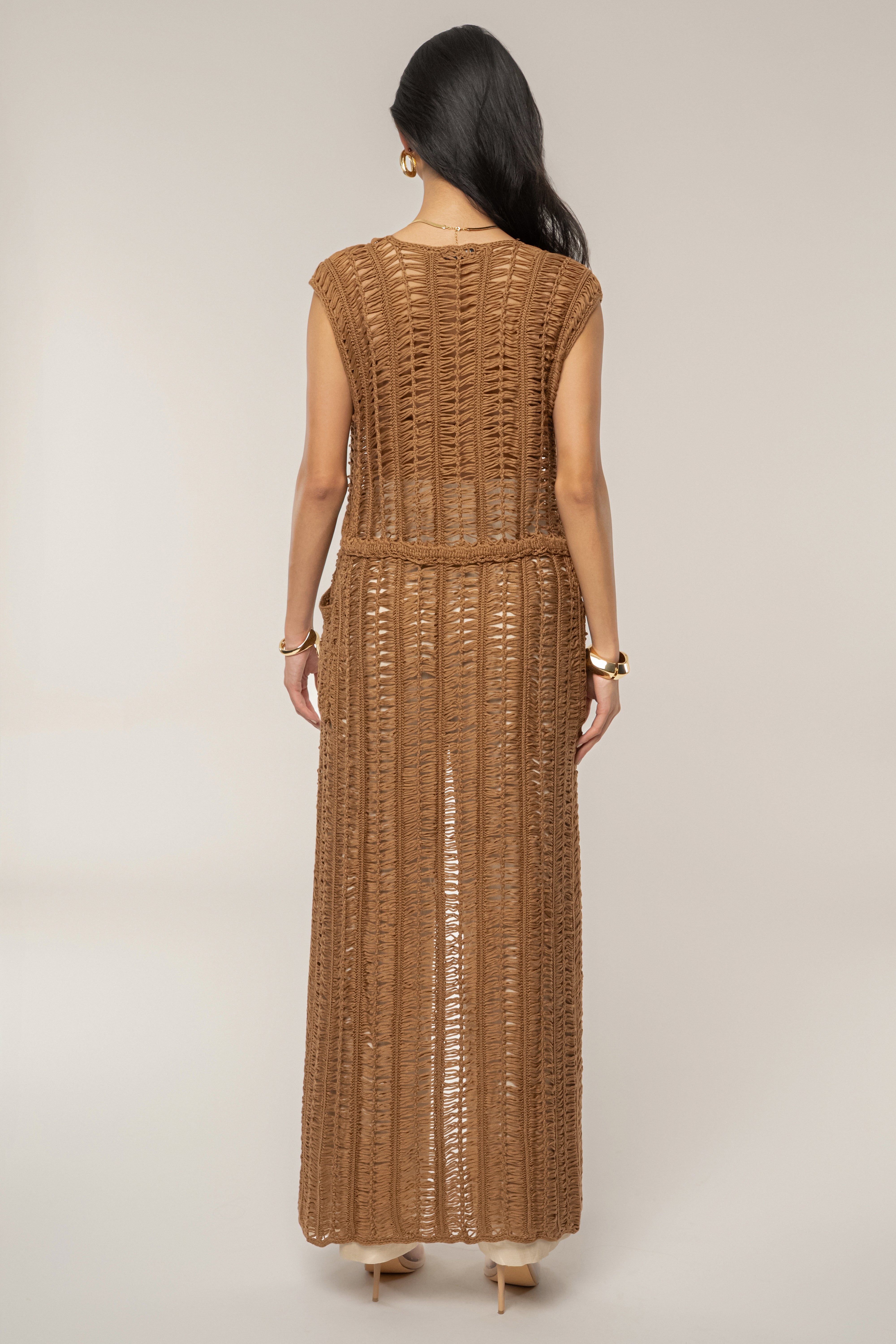 فستان ماكسي كروشيه باللون البني الفاتح من مارسيل