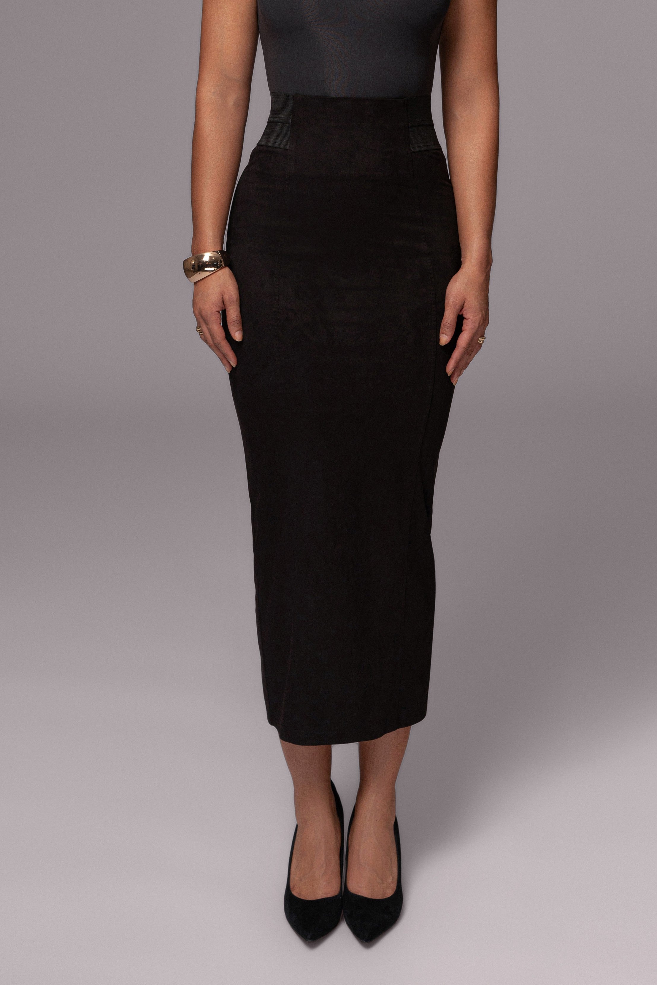 Redefine chic with our Black Phoenix Suede Skirt. Featuring a sleek pencil silhouette, elastic waistbands, a back zipper closure, and back slit hem. Crafted from a rich suede fabric making it a must-have for your seasonal wardrobe. Pair with our Elite Suede Coat for the full look. Single lined. Minimal stretch.