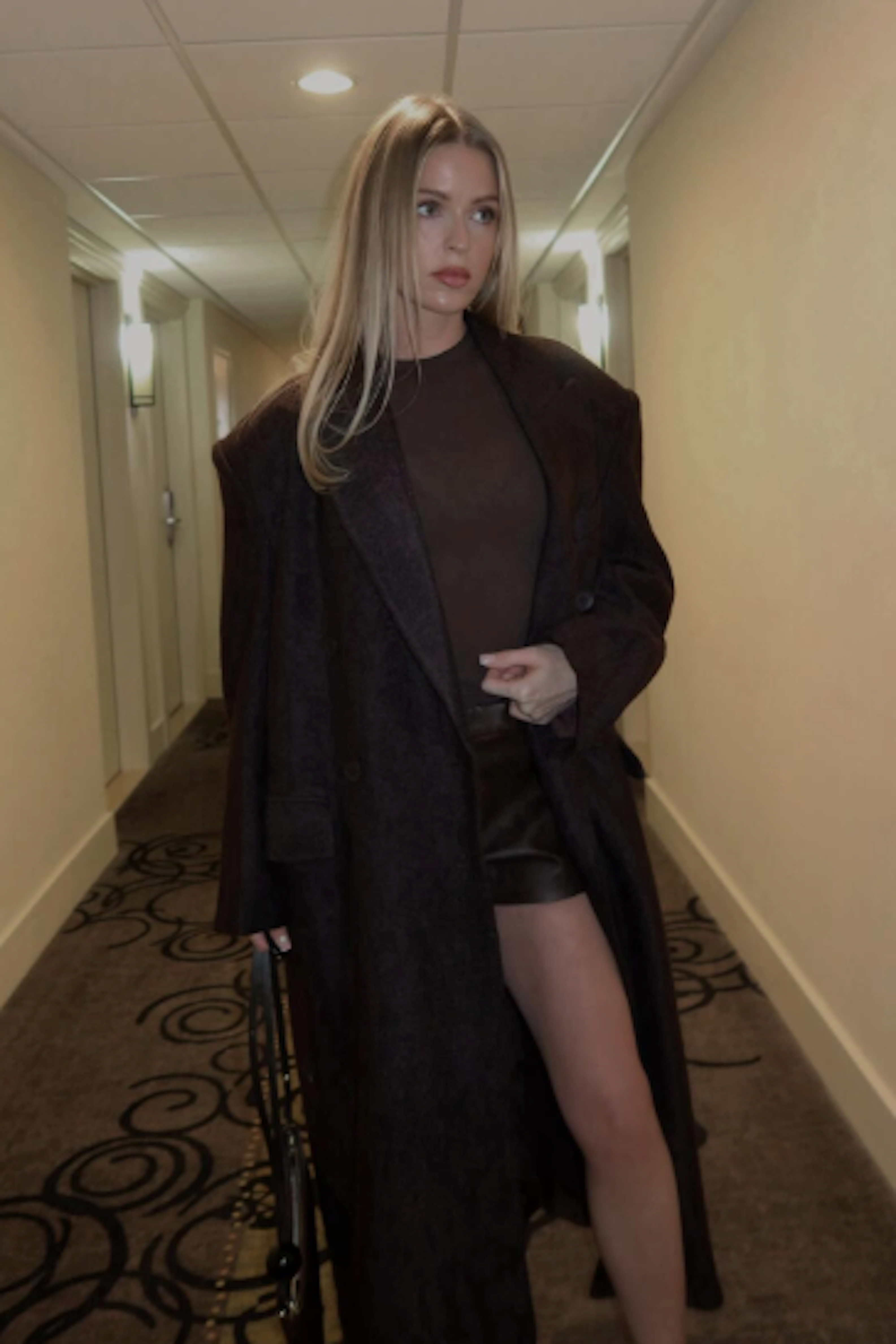 Our Chocolate Oversize Double-Breasted Coat is a timeless and versatile outerwear piece. Crafted from a luxurious, heavy fabric, this long-line coat features a relaxed, oversized fit with wide lapels and a classic double-breasted button closure. The mid-calf length and flap pockets add both functionality and sophistication, making it ideal for layering over any outfit. Lined interior. No stretch.