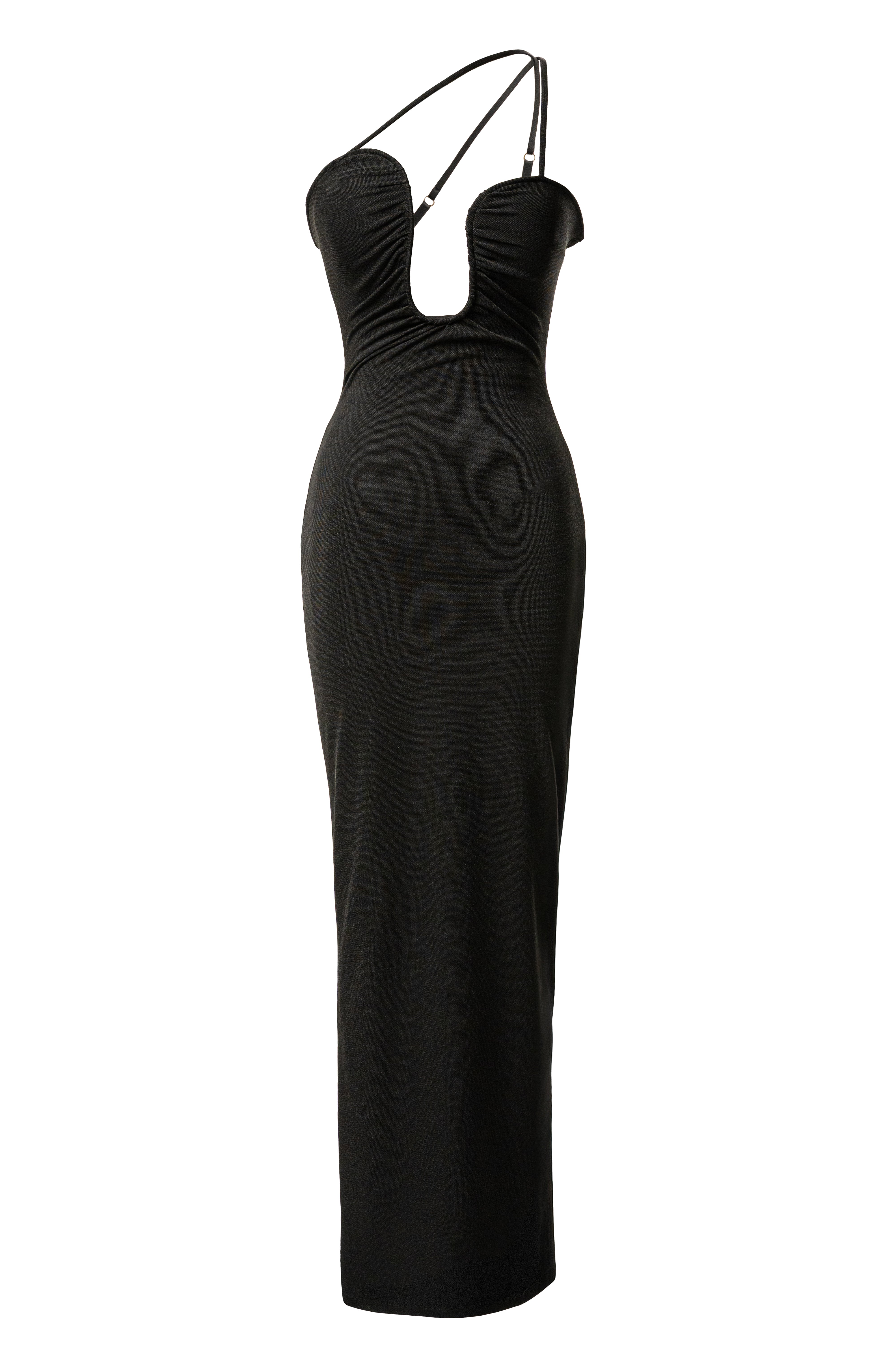 Black Eclipse Plunge Neck Dress - JLUXLABEL