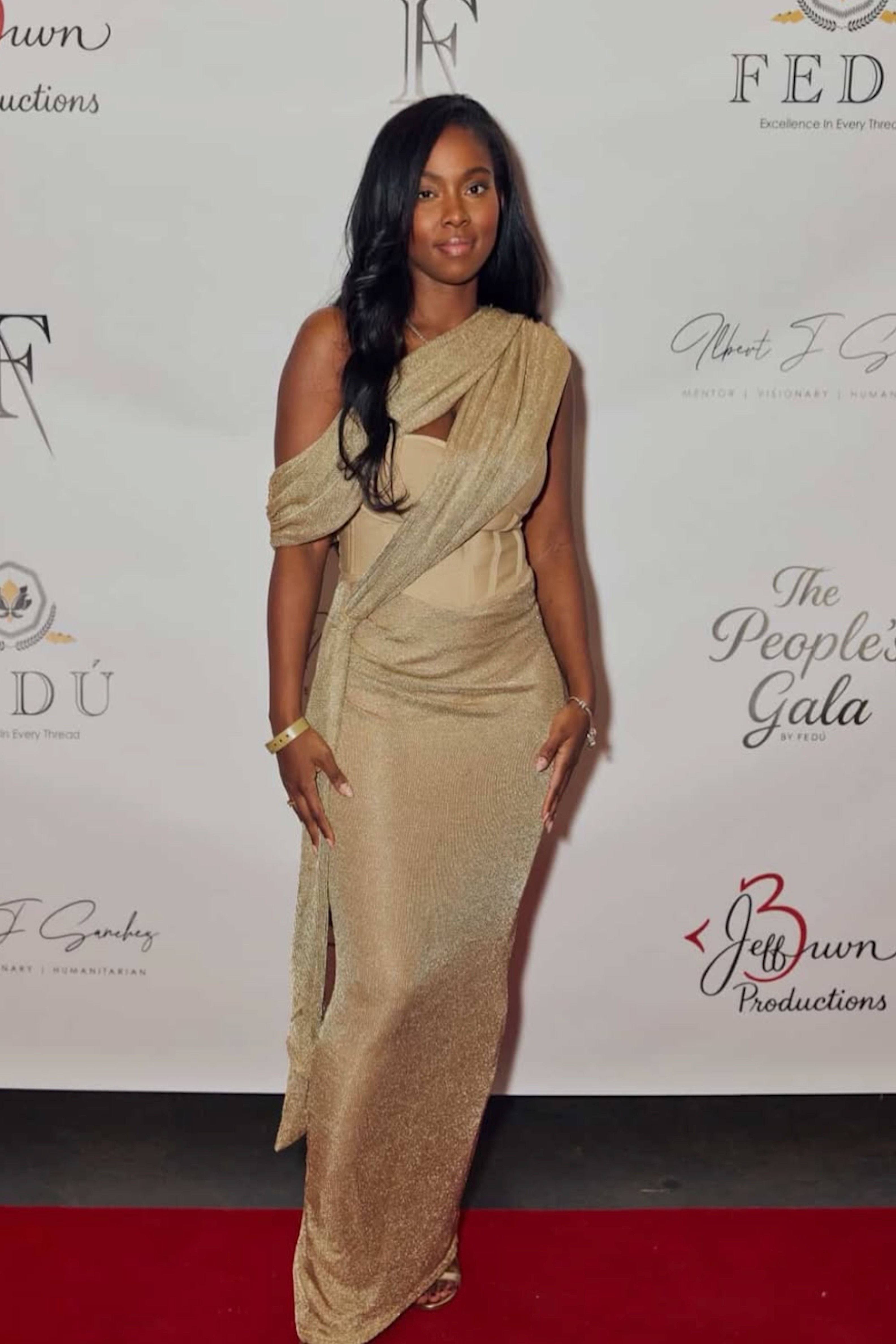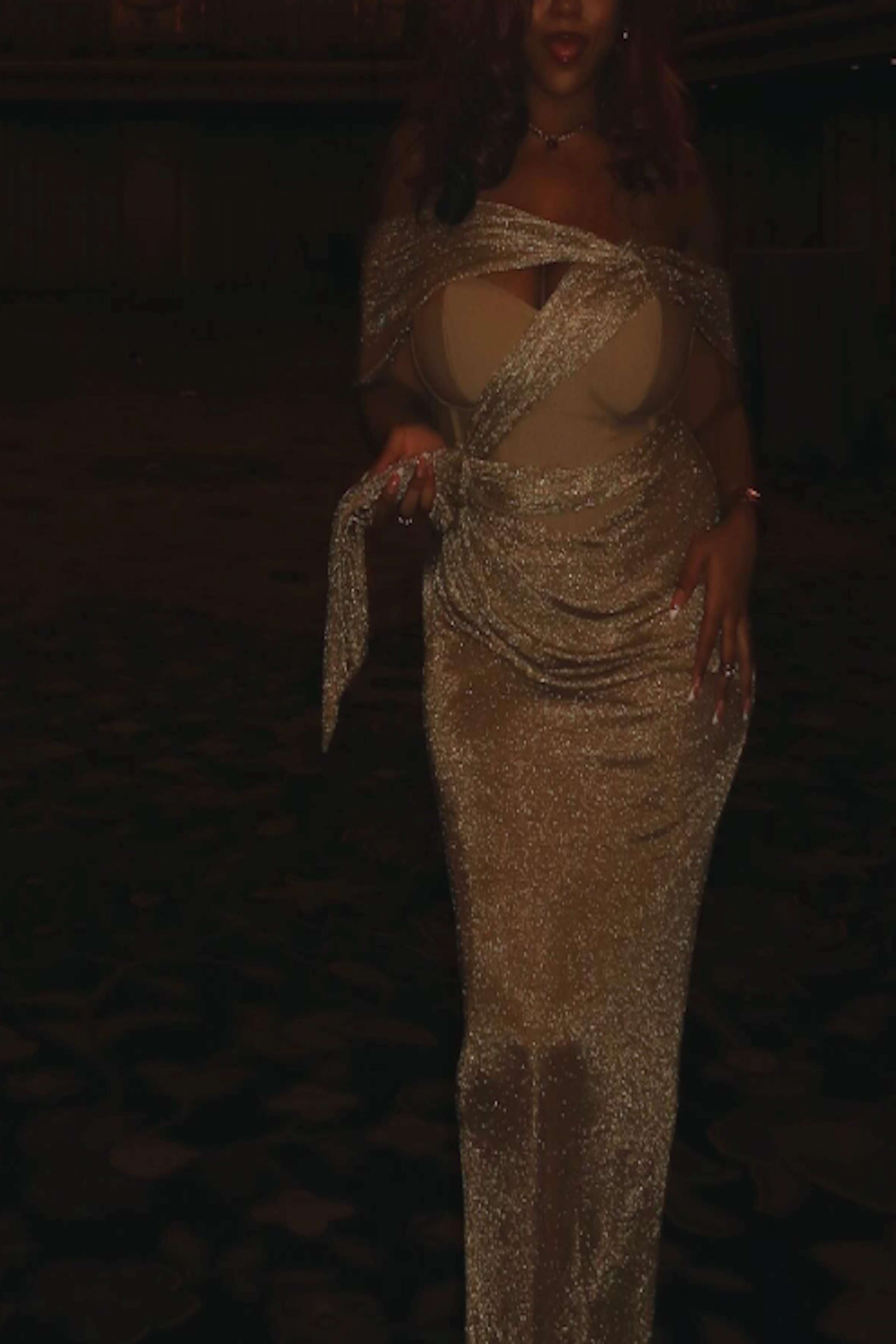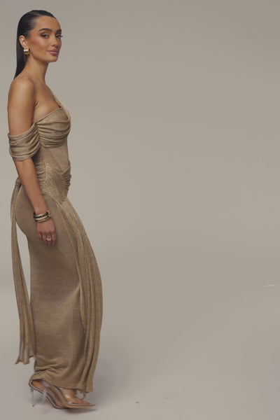 Our Gold Metallic Celestina Draped Maxi Dress is sure to take your breath away with its asymmetric neckline, enchanting corset design, and elegantly draped waist. Crafted from a luxurious blend of bandage and metallic chain netting fabric, this stunning maxi dress features an adjustable shoulder strap, cup padding, and boning on each side for added structure. It’s finished with a back zipper closure and non-slip grip gel at the bust for a secure hold. Double-lined. Stretchy.