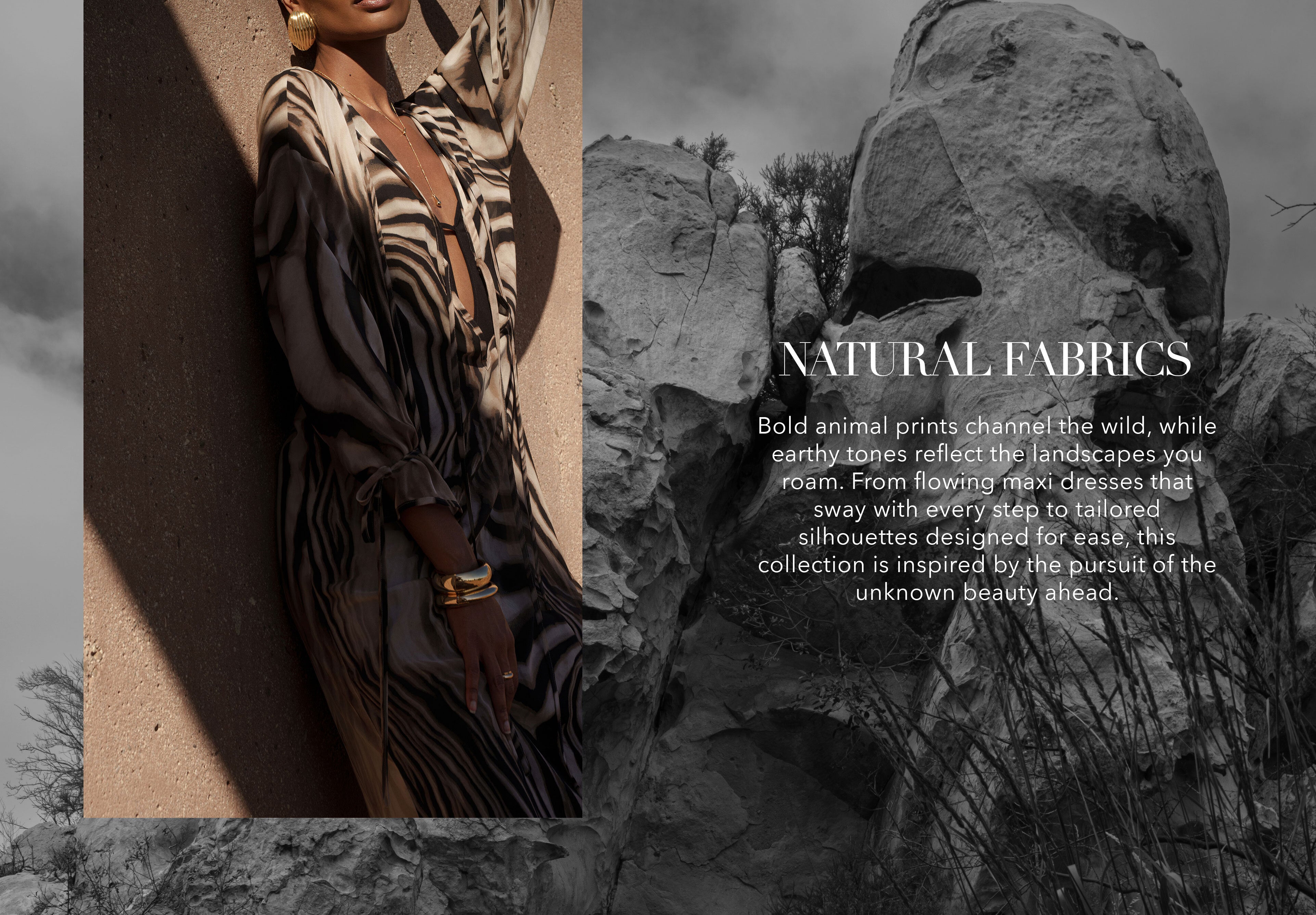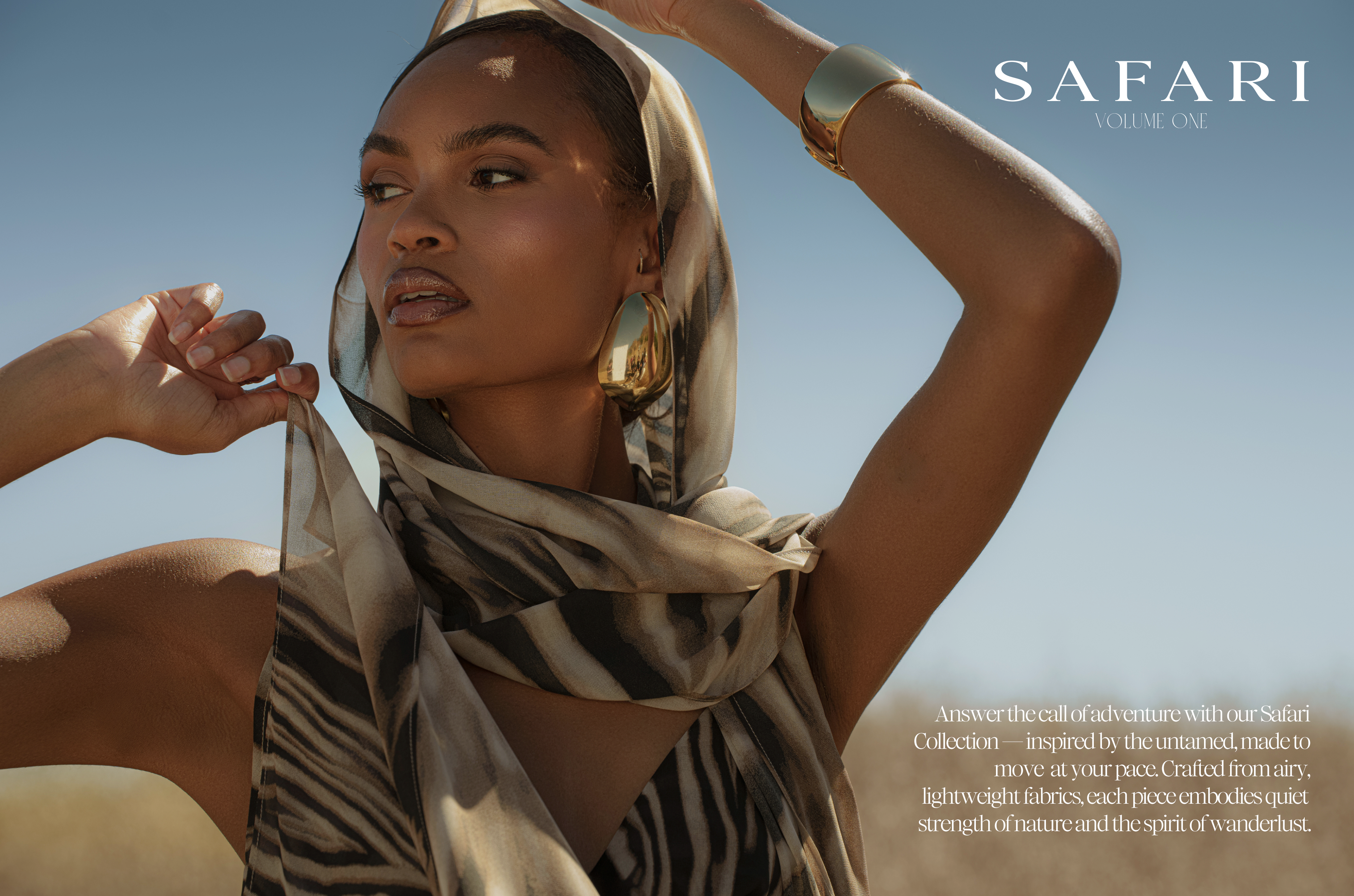 Answer the call of adventure with our Safari Collection — inspired by the untamed, made to move at your pace. Crafted from airy, lightweight fabrics, each piece embodies quiet strength of nature and the spirit of wanderlust. Bold animal prints channel the wild, while earthy tones reflect the landscapes you roam. From flowing maxi dresses that sway with every step to tailored silhouettes designed for ease, this collection is inspired by the pursuit of the unknown beauty ahead.