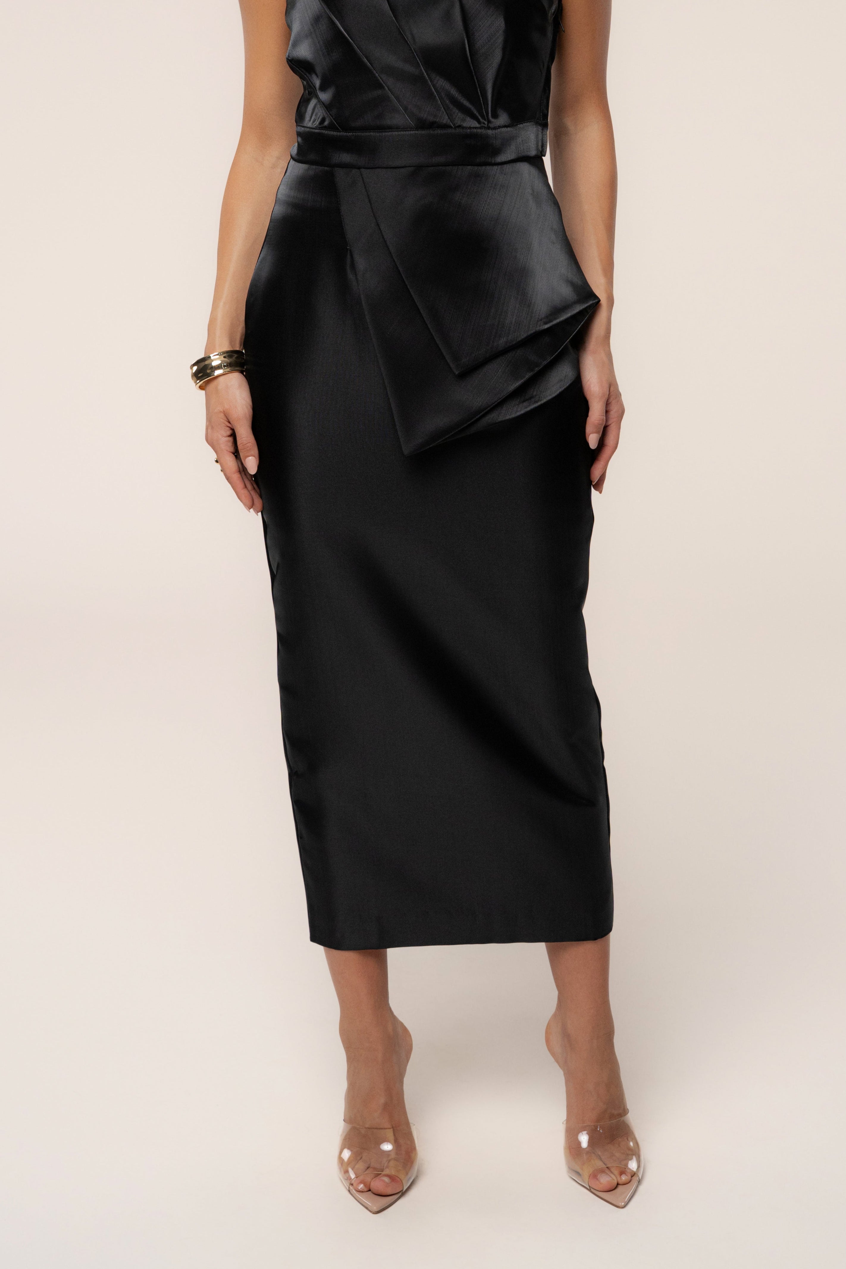 Black Reception Pleated Midi Skirt - JLUXLABEL