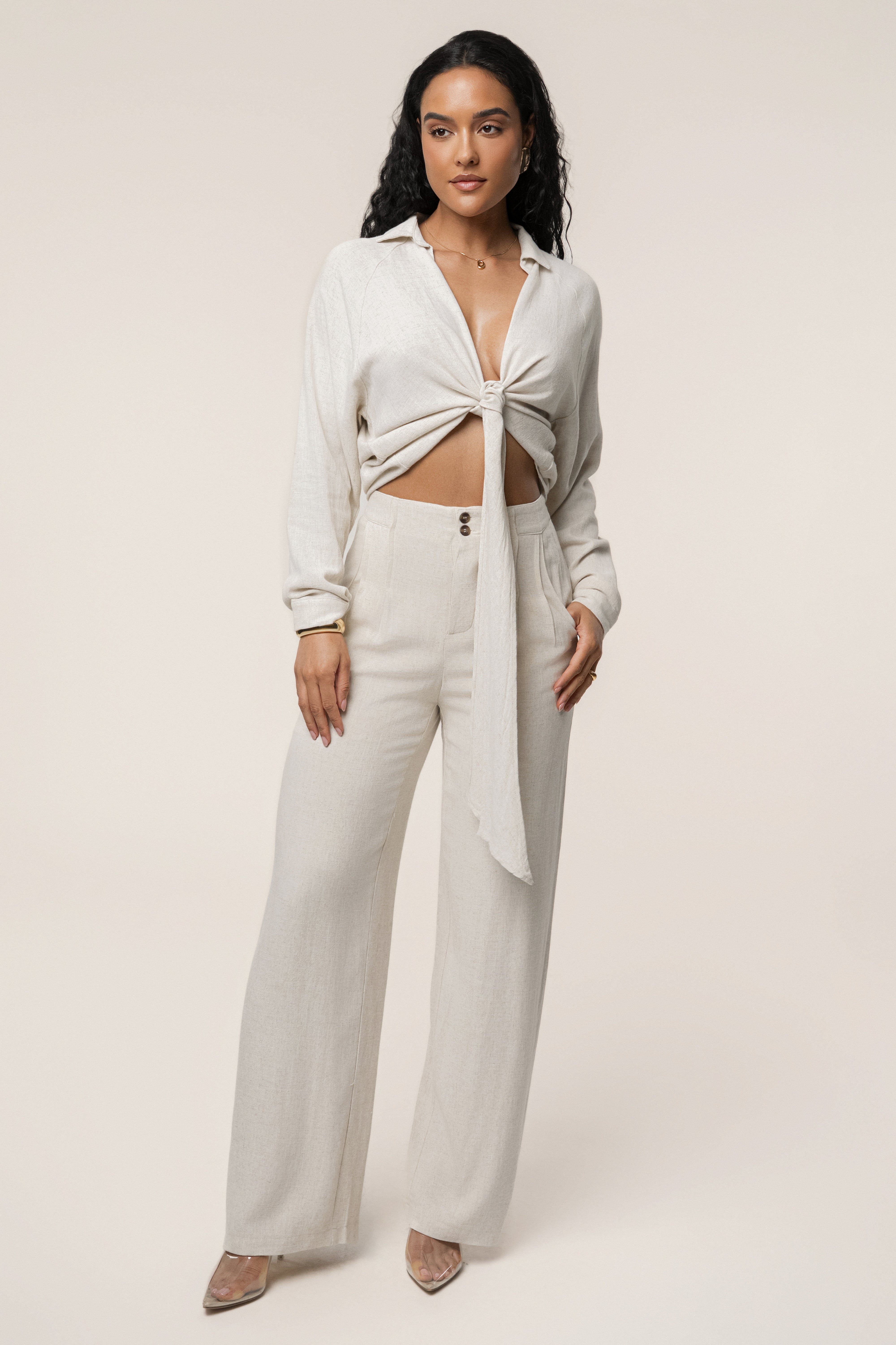 EXCLUSIVE ESSENTIALS BY JLUXLABEL. Look polished while maintaining a sense of cool with the BEIGE THEA LINEN PANTS. Made from a breathable linen material, these relaxed trousers feature darted detailing at the waist with functional pockets, a front button pattern closure, and straight leg hems. Fully lined with an elastic back waistband. We can’t get enough of the breezy aesthetic these trousers bring. Some stretch.