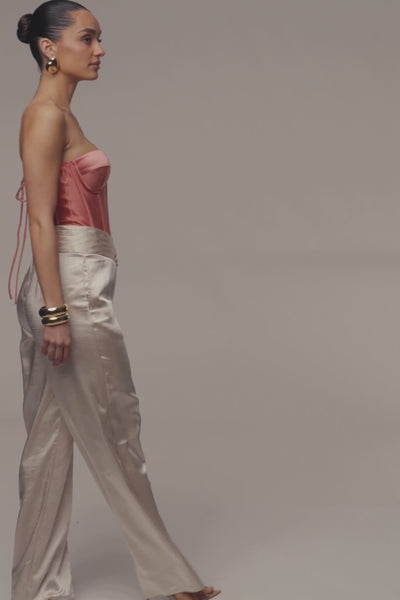 Our Salmon Adore Me Satin Corset is an expression of modern romance and sculpted elegance. Crafted from smooth, satin, this strapless design features a sweetheart neckline with padded/wired bra cups, structured boning, and contour seaming that shape and define the waist for a flattering, cinched fit. A lace-up back detail allows for adjustable support while adding a sensual, corset finish. Complete with a side zipper closure and non-slip silicone gripper at the bust for a secure hold. Designed for unforgettable nights, intimate dinners, and statement-making moments. Pair with our True Affection Satin Trouser for the full look. Minimal stretch.