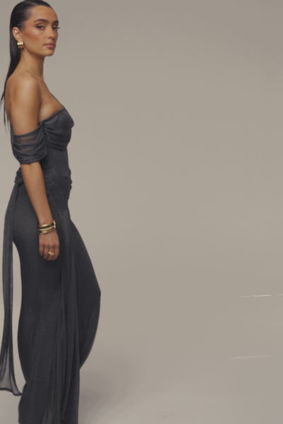 Gun Metal Draped Metallic Maxi Dress