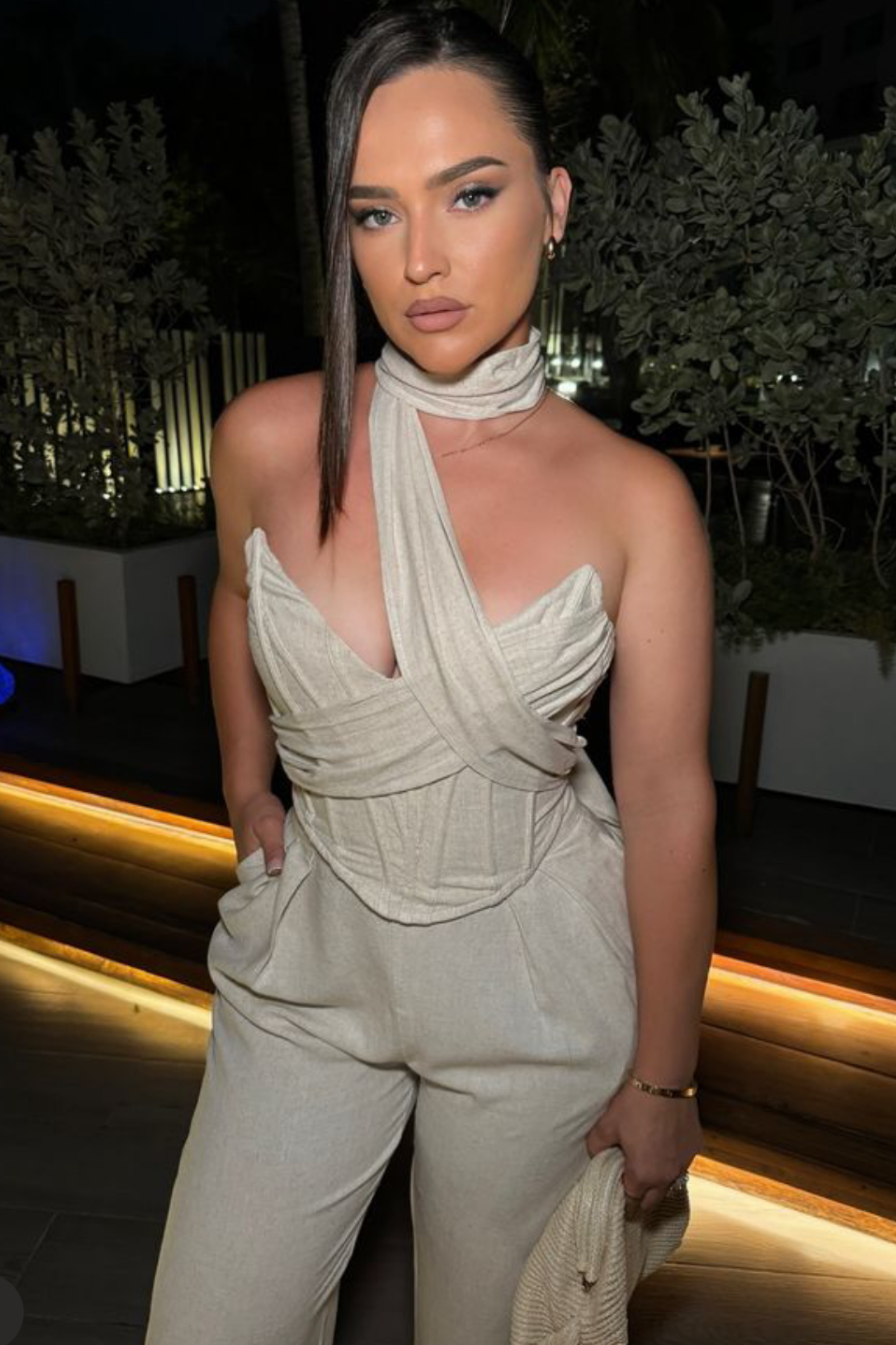 Live effortlessly elegant this summer in our Natural Coastal Bliss Linen Bustier. Crafted from a linen blend, this show-stopping bustier features a low v-neckline with a stylish drape that wraps around your neck and cascades down the back. Complete with a hidden back zipper closure and front/back boning structure for a flawless fit. Pair with our Dreamland Linen Skirt for the full look. Double Lined. Minimal stretch.