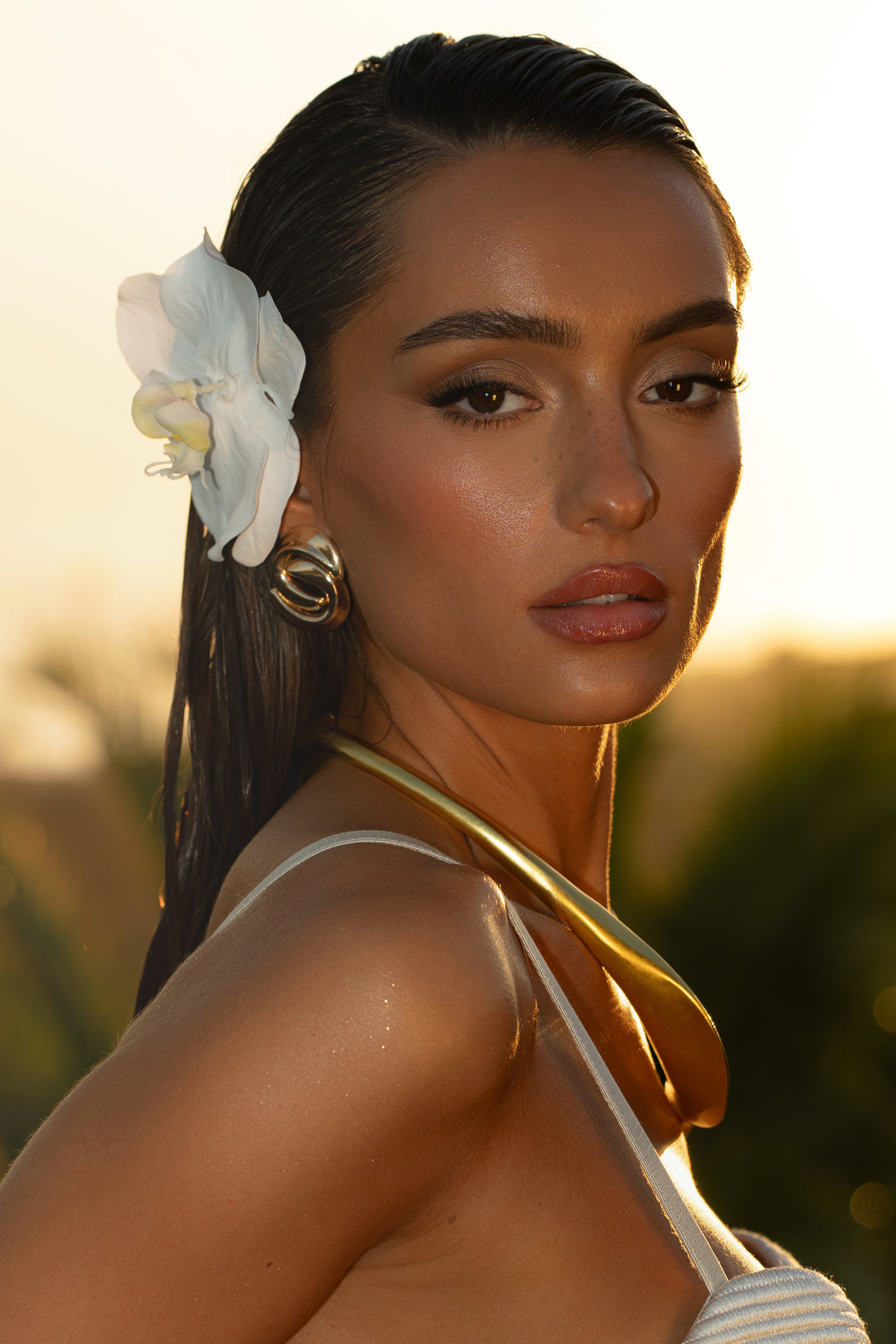 Let your glow lead the way in our Ivory Thalia Textured Bustier. Designed with adjustable, removable straps and padded, underwired cups, this piece offers a sculpted, flattering fit that enhances your natural shape. The rich textured fabric adds dimension and edge, while the hook-and-eye back closure provides secure comfort and versatile styling. Double lined. No stretch. Not sold as set.