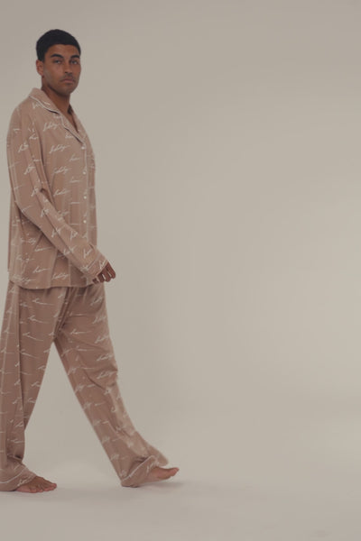 Bring Christmas morning to life with our Beige Home For The Holidays Adult Pajama Set. Designed from soft fabric, these pajamas feature a collared neckline, long sleeves, a chest pocket, and a button-front closure. The matching bottoms are finished with an elastic waistband and side pockets for comfort. A festive cursive print reading ‘Home’ and ‘Holiday’ adds a polished holiday touch. Create picture-perfect memories by matching with the whole family with our Home For The Holiday Kids Pajama Set. Single lined. Some stretch. Sold as set. UNISEX FIT.