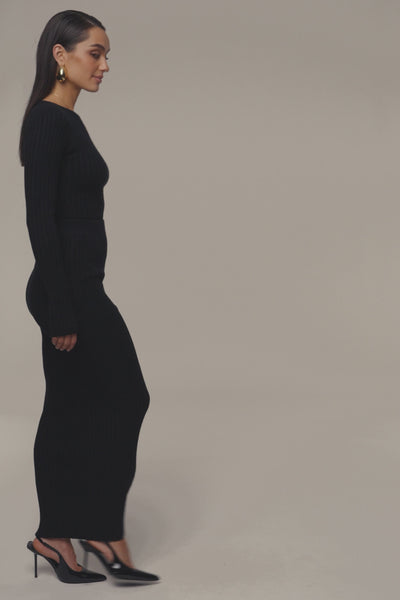 Renew your winter wardrobe with our Black Soft Reset Ribbed Skirt, a versatile piece that perfectly blends comfort and style. This maxi skirt features a flattering high-waisted design and a rich, ribbed texture that adds a touch of sophistication to its minimalist silhouette. Crafted from a soft, stretchable fabric, it hugs your curves comfortably while allowing for effortless movement throughout your day. Adorned at the waist with a dainty JLUXLABEL accent in a gold-tone finish. Your new go-to essential for creating polished, modern looks with ease. Pair with our Overcast Ribbed Top for the full look. Stretchy.
