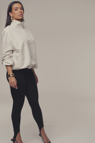 Enhance your active lifestyle with our Milk Oversized Funnel Jacket, a sleek essential for the modern mover. This versatile jacket features a high funnel collar and a functional half-zip front, allowing you to easily adjust your coverage and style on the go. The relaxed silhouette is perfectly tempered by an elasticized hem, creating a contemporary blouson shape that flatters every figure while ensuring a secure fit. Crafted from lightweight nylon fabric in an oversized silhouette. Complete with removable shoulder pads for a more structure look. Stretchy.