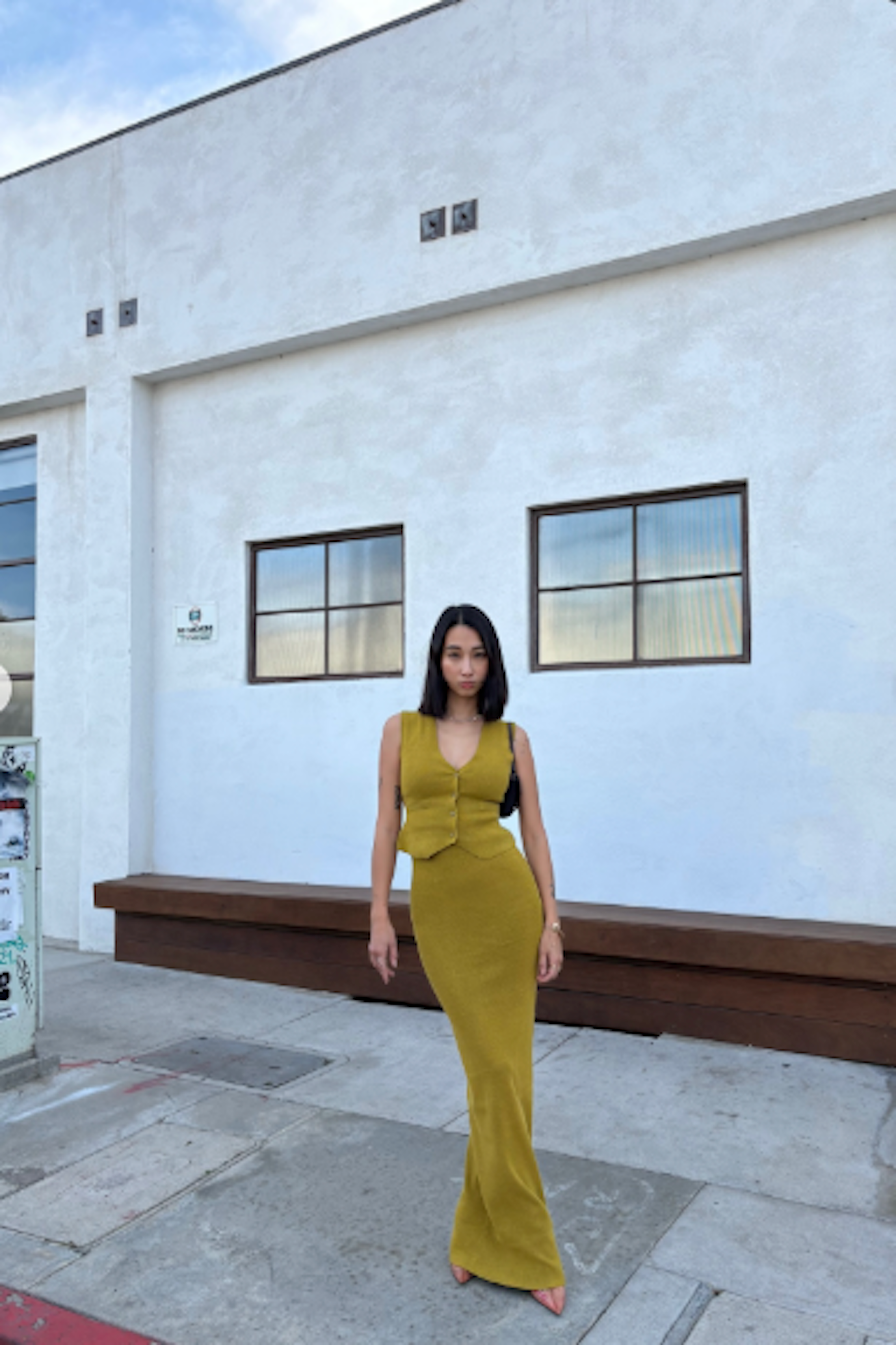 Experience the luxe touch of knitwear with our Moss Cassidy Two-Piece Skirt Set. Designed for ultimate comfort and timeless style, the sleek vest features a button-front closure that exudes understated sophistication. Paired with a matching maxi skirt, it offers a flattering form-fitting silhouette and an elastic waistband for all-day ease. Made from luxuriously soft knit material, this set blends coziness with refined design. Back slit hem. Sold as set. Stretchy.