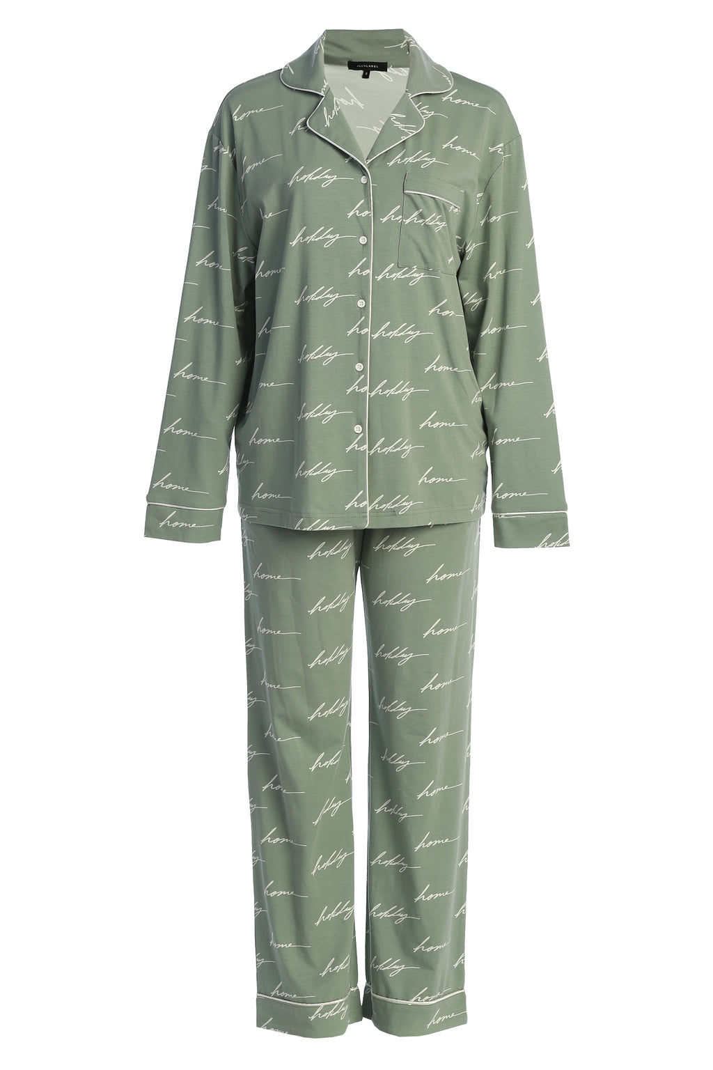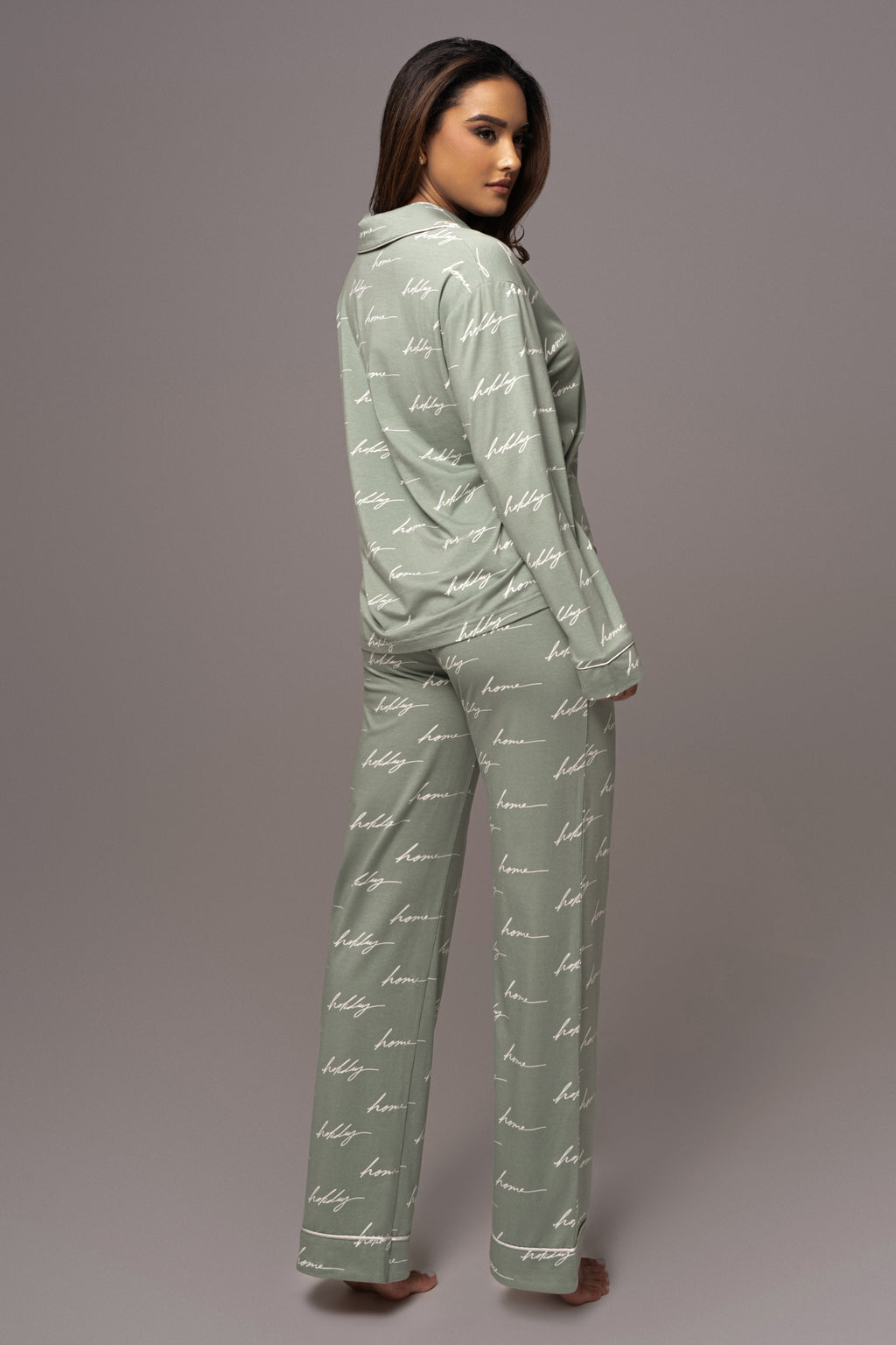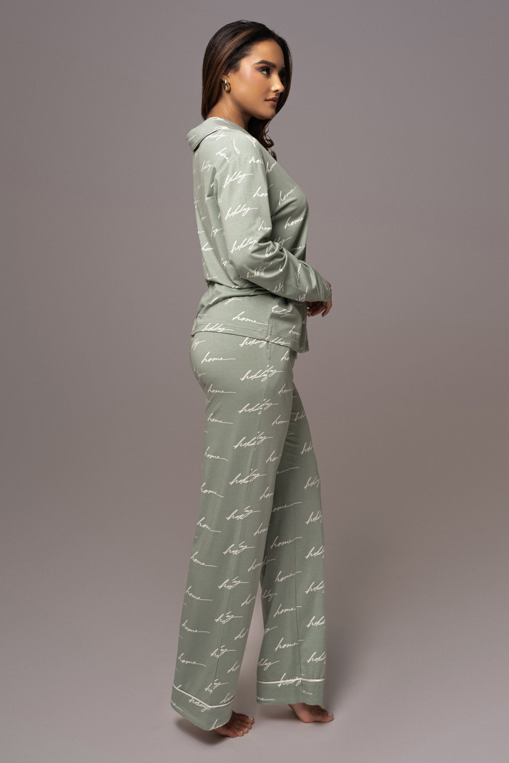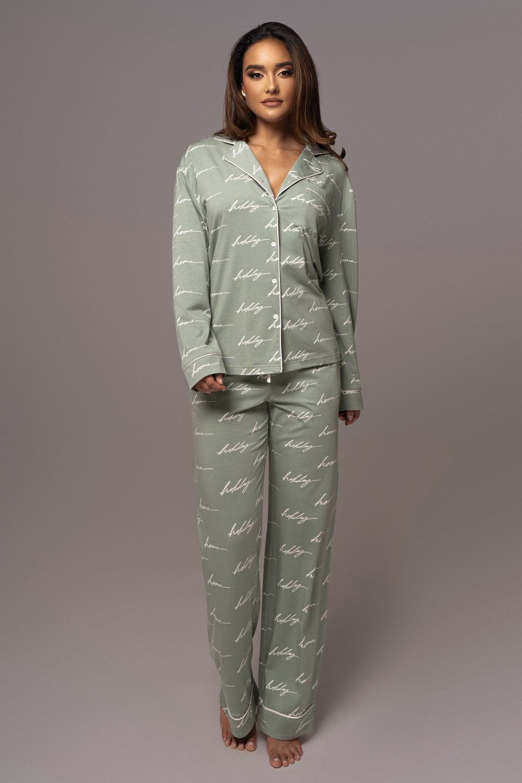 Bring Christmas morning to life with our Sage Home For The Holidays Adult Pajama Set. Designed from soft fabric, these pajamas feature a collared neckline, long sleeves, a chest pocket, and a button-front closure. The matching bottoms are finished with an elastic waistband and side pockets for comfort. A festive cursive print reading ‘Home’ and ‘Holiday’ adds a polished holiday touch. Create picture-perfect memories by matching with the whole family with our Home For The Holiday Kids Pajama Set. Single lined. Some stretch. Sold as set. UNISEX FIT.